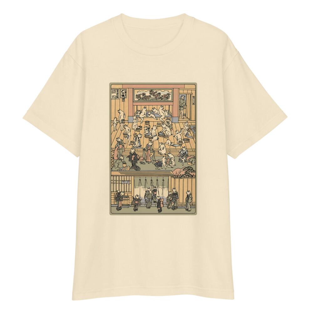 【猫の湯屋】擬人化にゃんこ|浮世絵ネコ柄Tシャツ