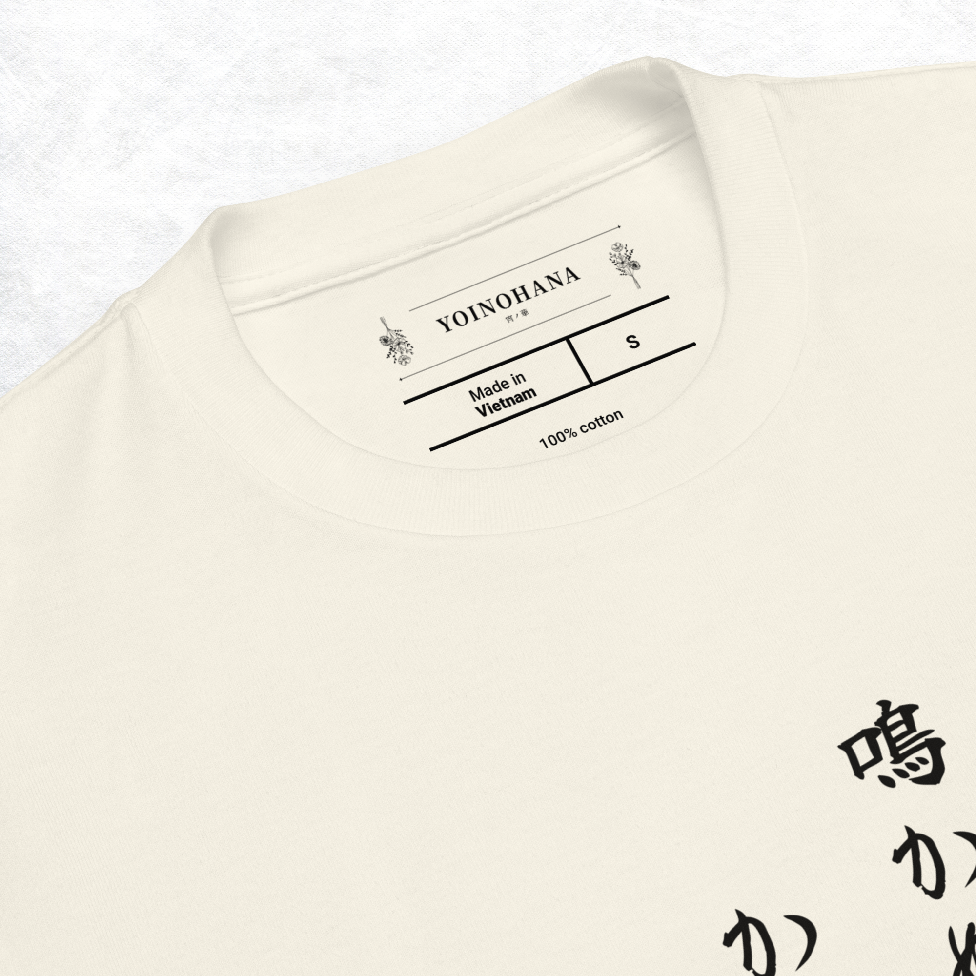 誰もが知るあの俳句を、究極のポジティブ精神で書き換えました。 相手が鳴かないなら、自分が鳴けばいい。そんなシンプルで軽やかな「遊び心」を、凛とした筆文字で仕上げた一着です。