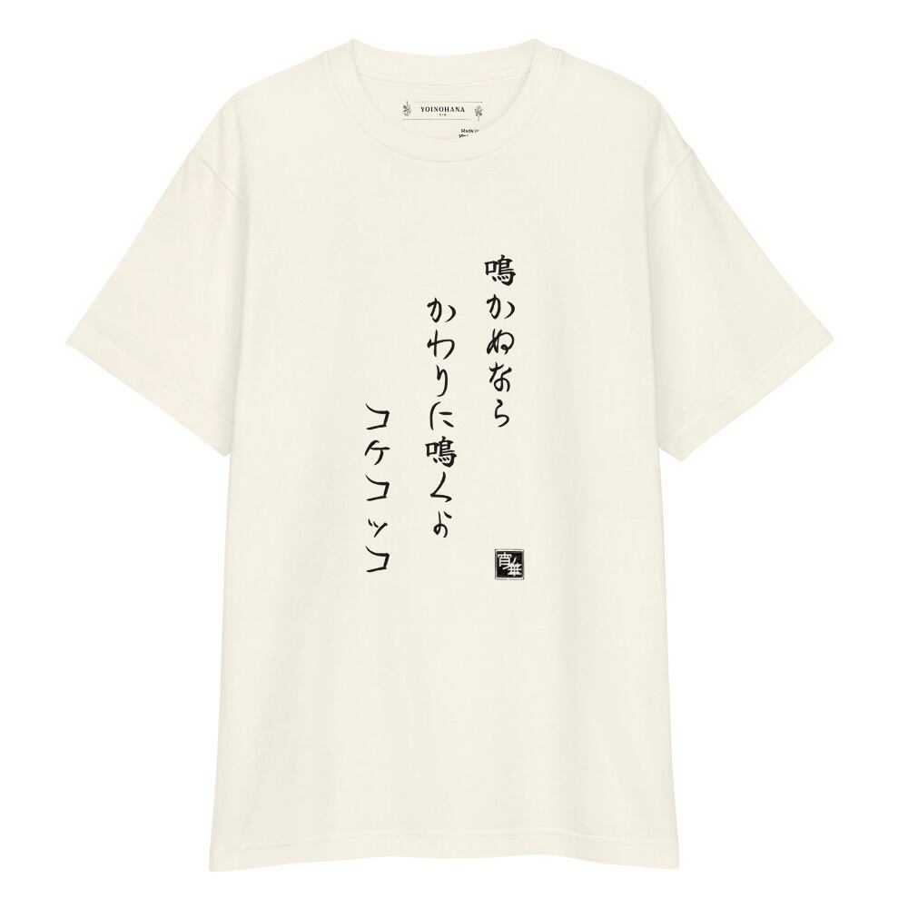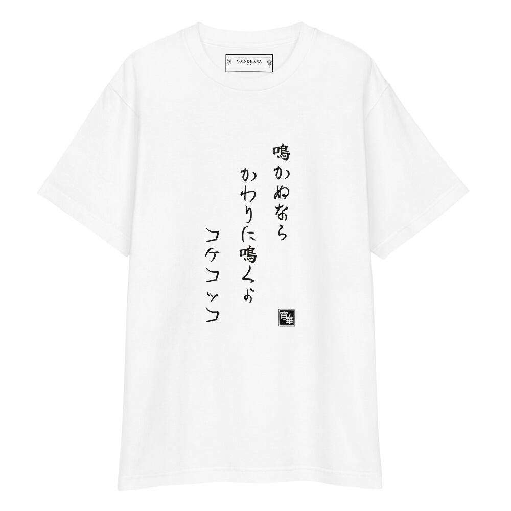 【 俳句ネタ 】鳴かないシリーズ / 其ノ2「かわりに鳴くよ コケコッコ」|筆文字俳句 半袖コットンTシャツ