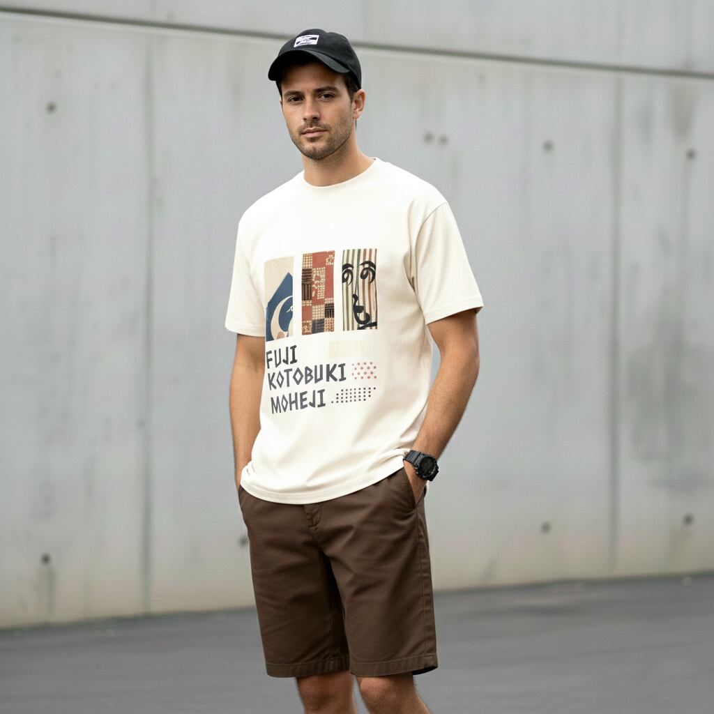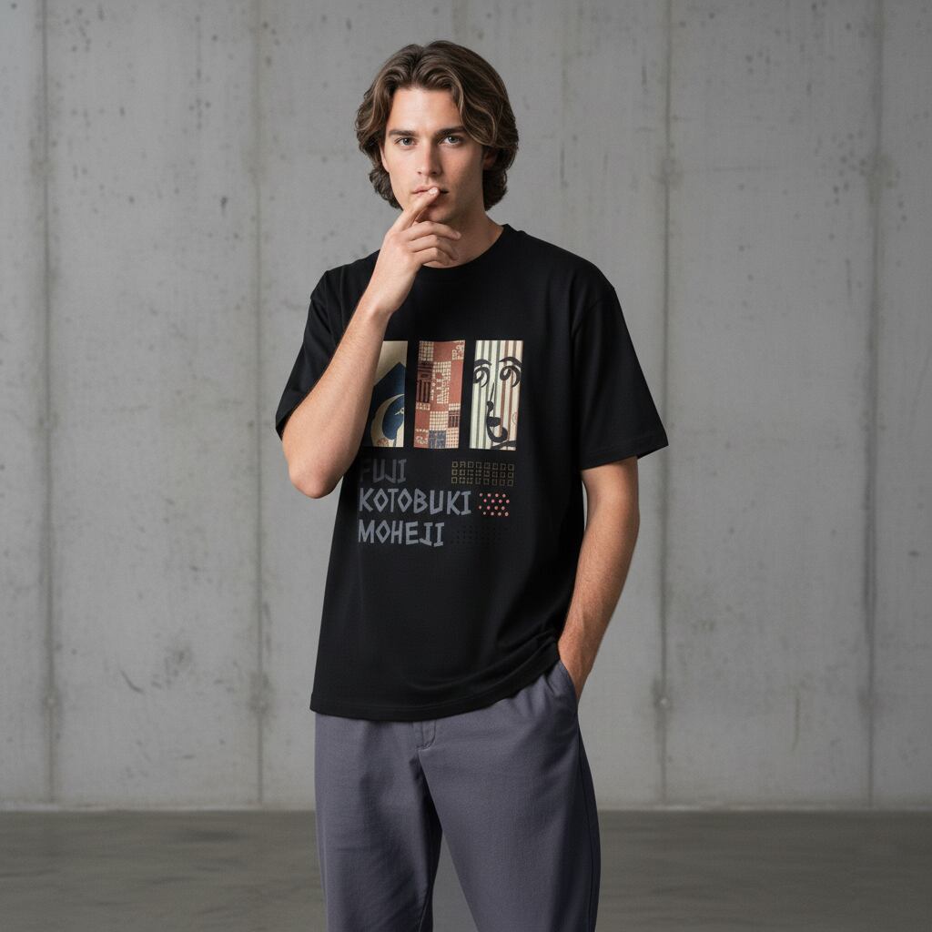 シンプルなデニムやワイドパンツに合わせるだけで、洗練された「和モダン・ストリート」が完成します。ジャケットのインナーとして、グラフィックをチラ見せする着こなしもおすすめです。