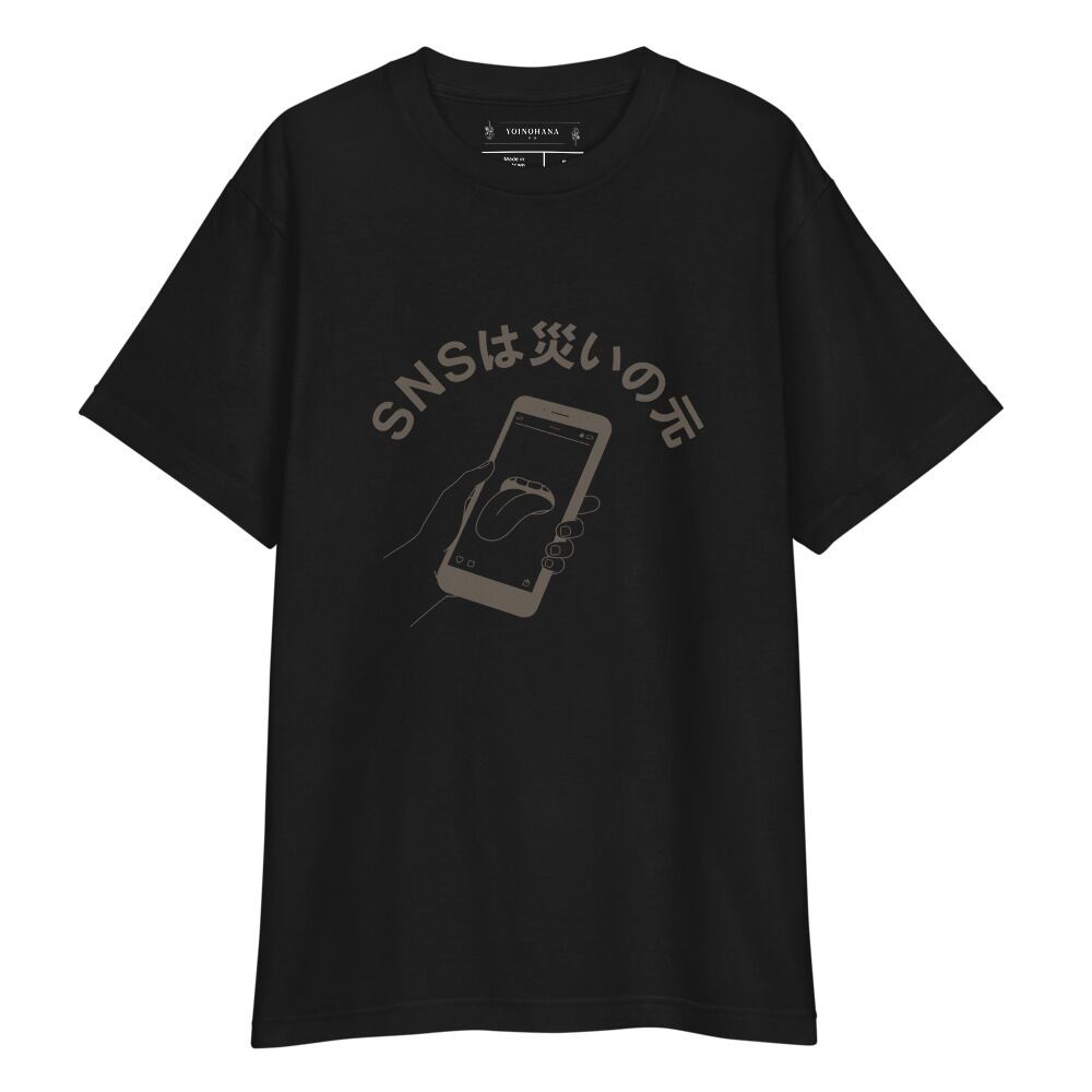 【SNSは災いの元】皮肉メッセージ ストリート系 グラフィックデザイン |おもしろ ことわざTシャツ 《 モノトーン.ver 》